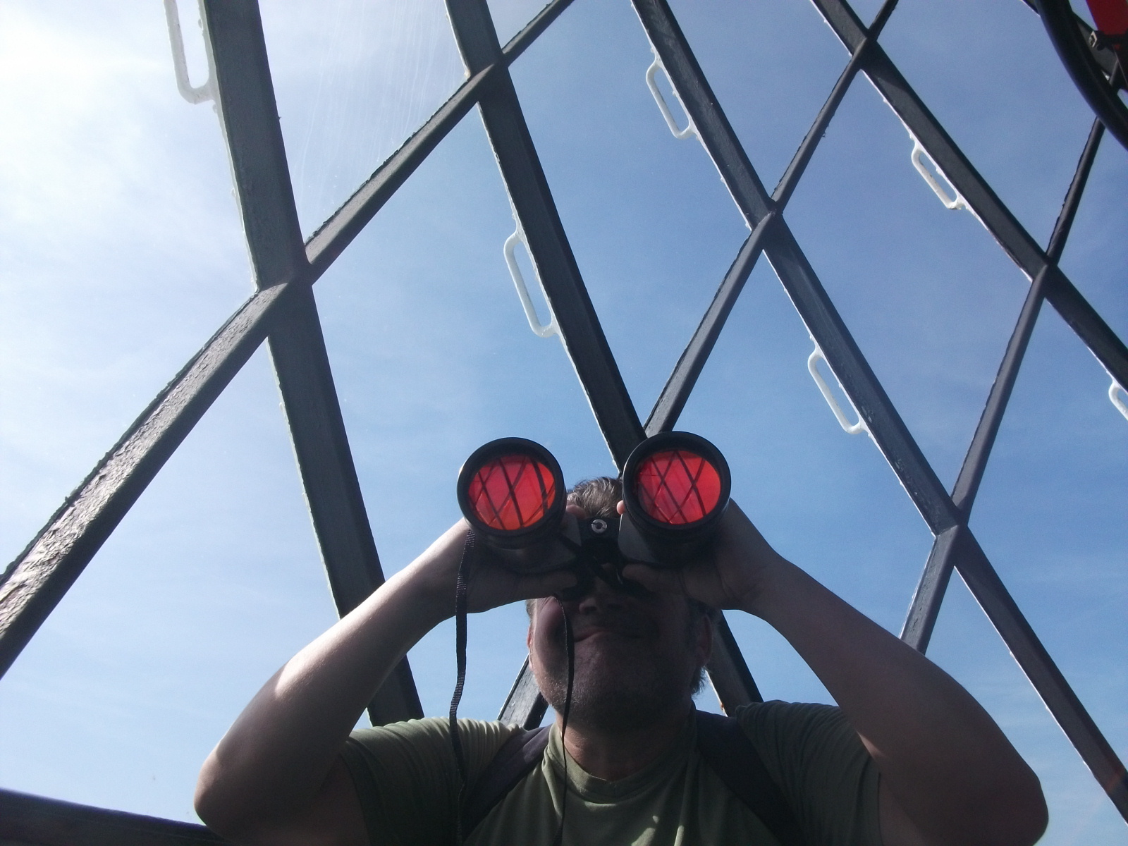 Of course, nothing is ever as simple as it should be. I thought I had entered the lighthouse on a whim, but it fact I had been tricked! Unbeknownst to myself, my face had applied for a part time job as an emergency replacement light... My job is to grimace at passing ships as I rotate, to warn them off reefs and stop them colliding with mermaids and Atlantis. So now I am trapped inside the lamp and will never be set free again. Needless to say, my situation made me furious, which explains why I am seeing red in the photograph below... Imagine being tricked by one's own face! How can I ever trust any of my expressions again?